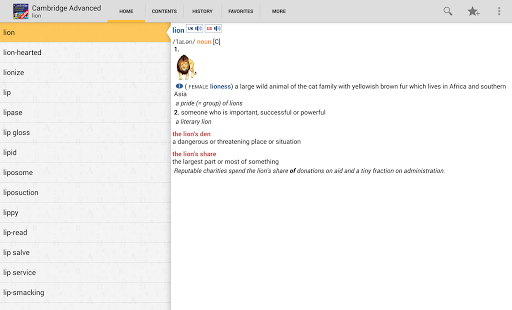 Cambridge English lexicon with more than 70,000 words, expressions and cases.