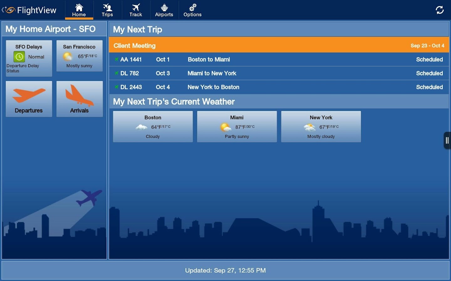 • Trips are adjusted between gadgets and with http://www.flightview.com so you can rapidly reference their statuses all around