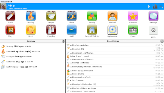 Infant Connect is the most far reaching child following application on the Market. It has graphical reports and slanting outlines, week by week midpoints, drug, immunization, clocks, warnings, messages, .csv trade, a simple to utilize interface, boundless information, and permits you to trade data progressively with your life partner, sitter, caretaker or childcare wherever they are.